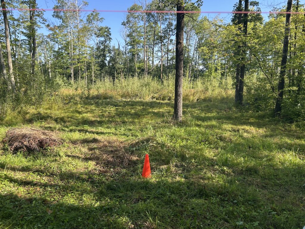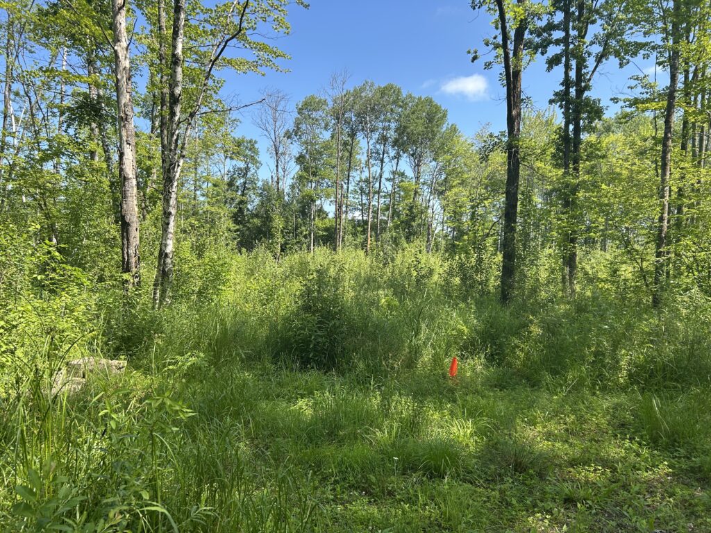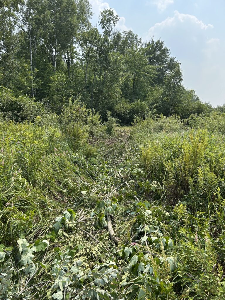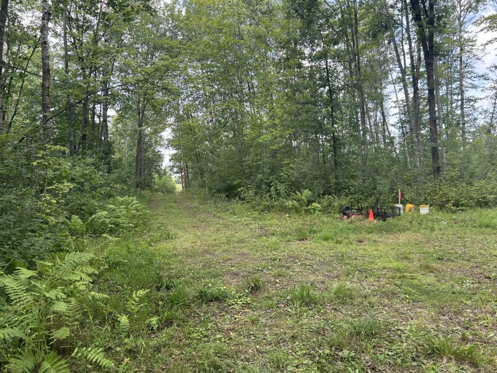 We initially met with the builder on the property in early July to discuss and start planning the location of the house, septic, well, and power. Being July and the fact that this year saw lots of rain in the spring, the brush was very overgrown. We were able to very roughly lay out the placement of these things, but I first needed to clear out some of the brush before we could really start to plan. We ended up deciding that it would be worth it for me to clear the bushes and saplings by hand, but leave the larger tree removal for the heavy equipment that would be up there for future work. I would say there are two main areas that I was focusing on and those were the area where the house would eventually sit and along the edges of the driveway as it wasn’t wide enough as it stood to allow for delivery of the house.