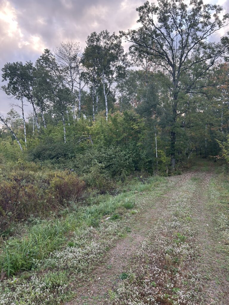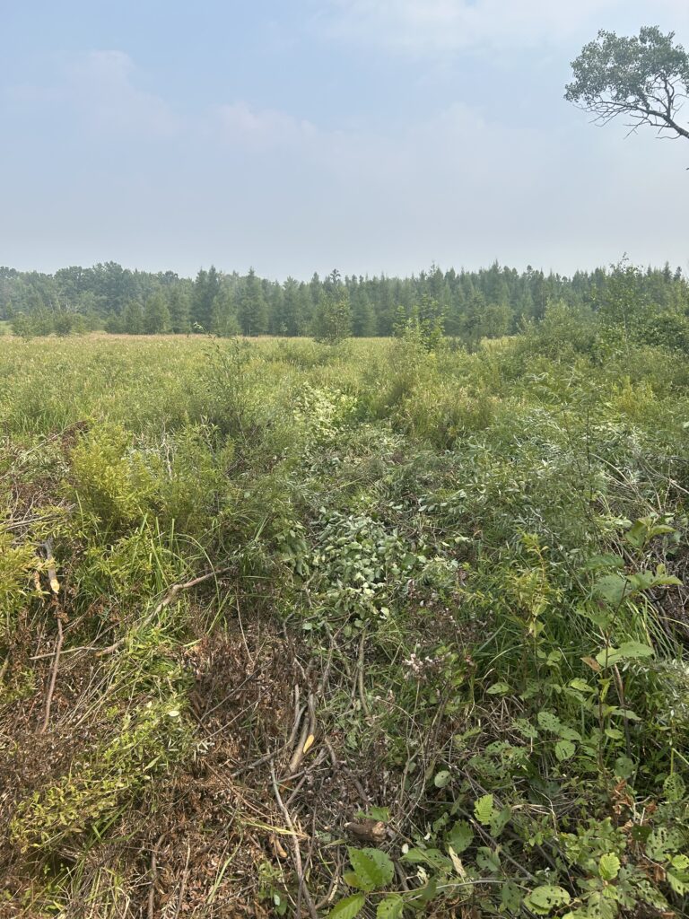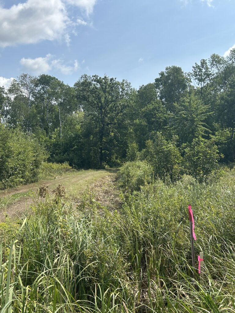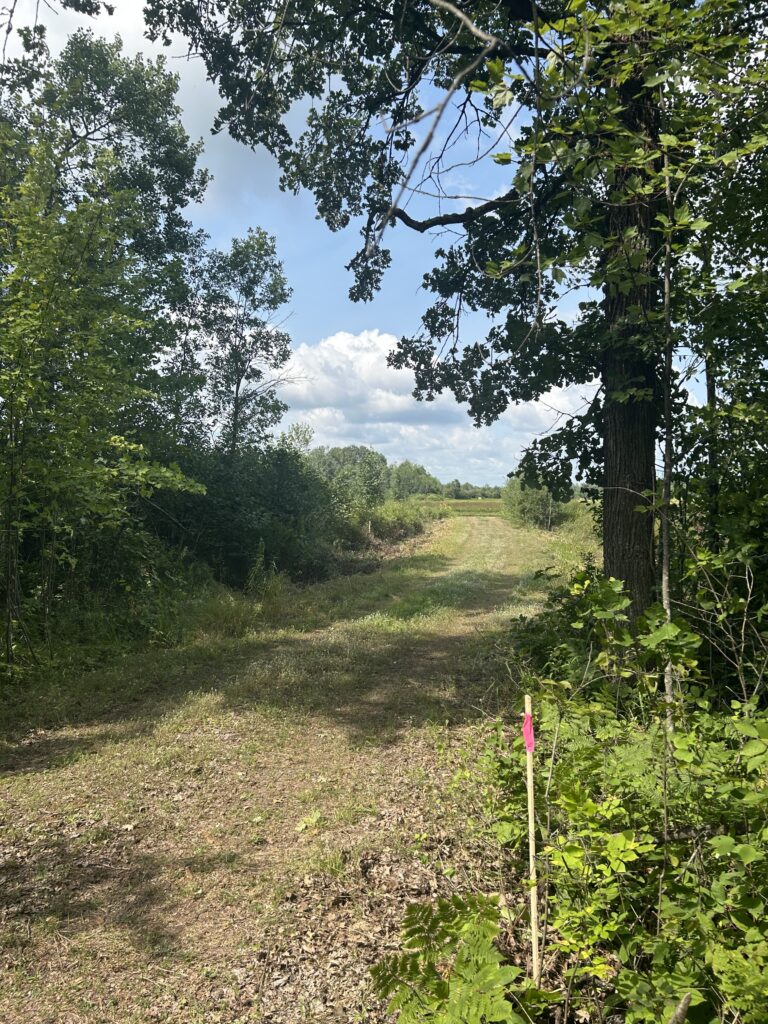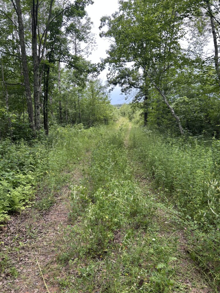 We initially met with the builder on the property in early July to discuss and start planning the location of the house, septic, well, and power. Being July and the fact that this year saw lots of rain in the spring, the brush was very overgrown. We were able to very roughly lay out the placement of these things, but I first needed to clear out some of the brush before we could really start to plan. We ended up deciding that it would be worth it for me to clear the bushes and saplings by hand, but leave the larger tree removal for the heavy equipment that would be up there for future work. I would say there are two main areas that I was focusing on and those were the area where the house would eventually sit and along the edges of the driveway as it wasn’t wide enough as it stood to allow for delivery of the house.