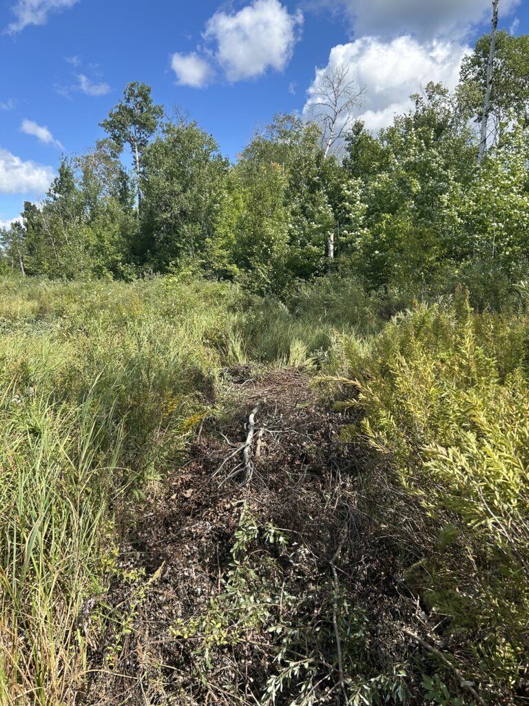When I was clearing the brush on the edges of the driveway I had an unexpected idea that I think will end up being really cool. After taking down the brush I needed somewhere to put it. Initially I just moved it back a little bit so that it would not interfere with the house, but if you know me then you know I like to use “waste” in a beneficial manner. Somewhere along the way I decided that it would be neat if I used the brush to create a walking path through the marsh area. A lot of the reason for this is because I’ve recently started to look into foraging, and I’ve learned there are many edible things that grow in marshy areas! It might be hard to see the path I have made in the pictures below and maybe it will be a little more obvious in the winter/spring. Or you can visit us and experience it for yourself 😀 The path is only partially completed and I will need to continue to add to it over the years. I am excited to see what it takes to build this and what it becomes!