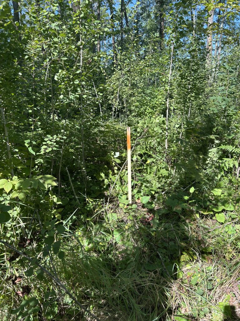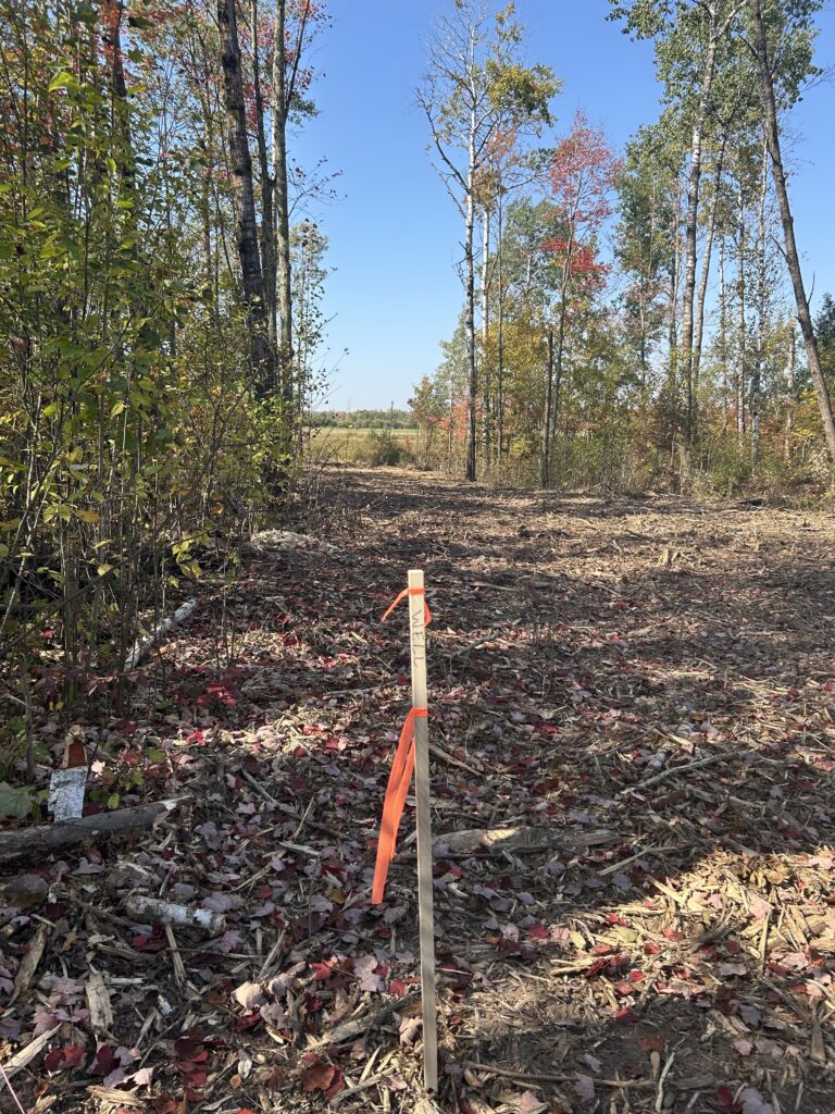 Now that things were cleared up a little we could start to stake out the locations of the house corners, power hookup post, septic system, and well. These didn’t have to be exact right away, but more of a general placement that could be adjusted if necessary.