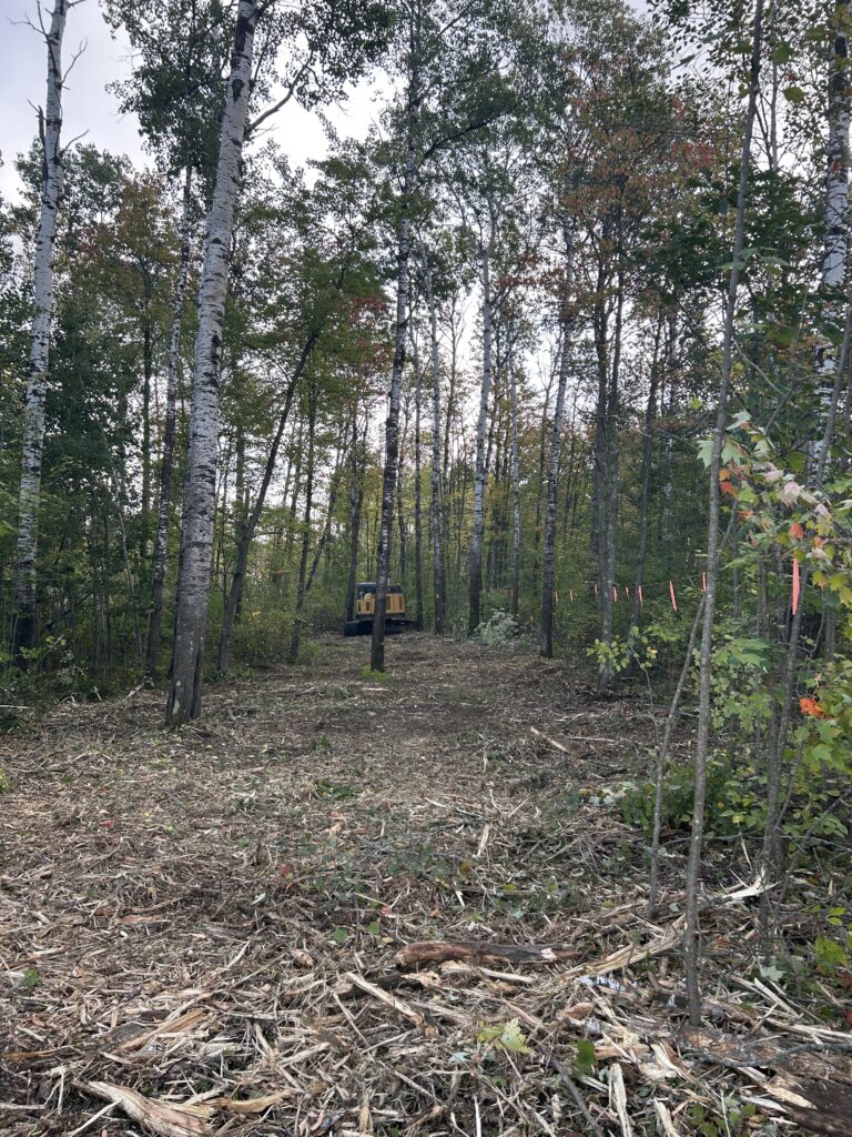 The builder was able to quickly line up someone who could help me clear the trees for a new driveway. It is always a treat to watch someone who had mastered a craft, and it was a really good reminder of what power tools/equipment can provide. The clearing for the new driveway is ~300 ft long and ~20 ft wide. We also had them clear a few trees where the house and septic system are planned. What would have taken me weeks or months to complete was done in about 6 hours!