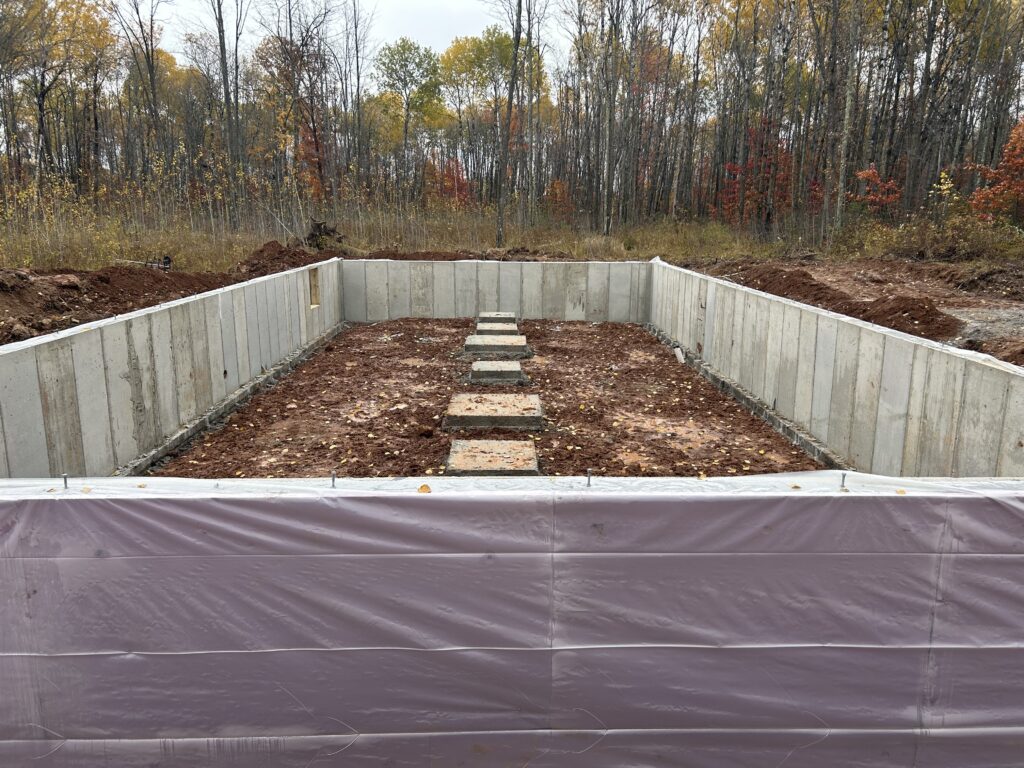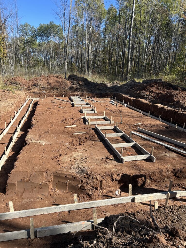 About only a week after placing the stakes we were excavating for the foundation! We were treated to some gorgeous weather, and everything just seemed to fall into place on this day. While the excavation company was working, the power company showed up and started their work on getting our transformer planned out. The concreted pouring company wasn’t supposed to make it up there until the next week, but the job they had that day got delayed and we got bumped up!! After one day of work the homestead looked very different. It was a great reminder that many hands make light work 🙂